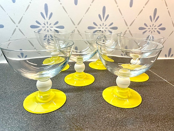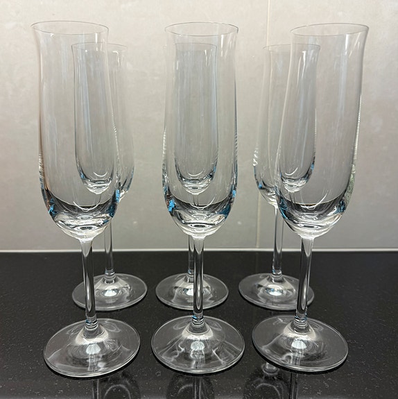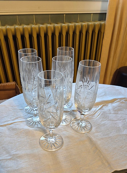 Vanhat laakeat kuohuviinilasit