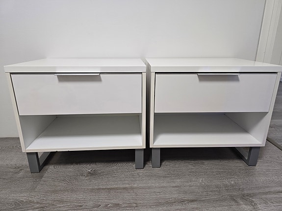 JYSK korkeakiilto valkoiset yöpöydät 2kpl