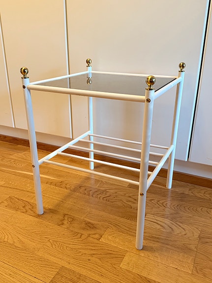 Tyylikäs valkoinen sivupöytä / yöpöytä lasikannella