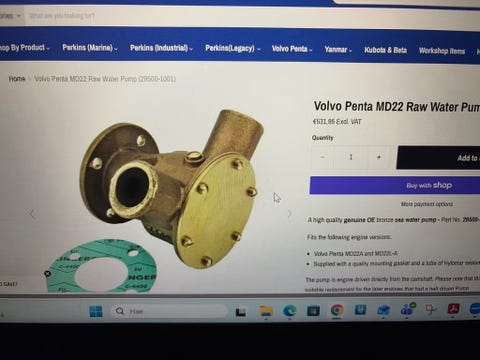 Volvo Penta MD22 raakavesipumppu messinki