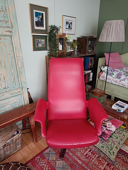 Alvar Aalto nojatuoli punaisella verhoilulla