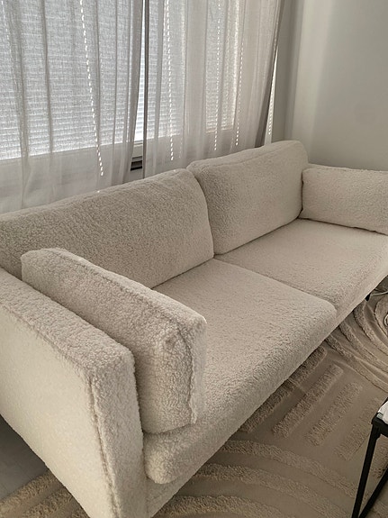 Valkoinen teddykangas sohva