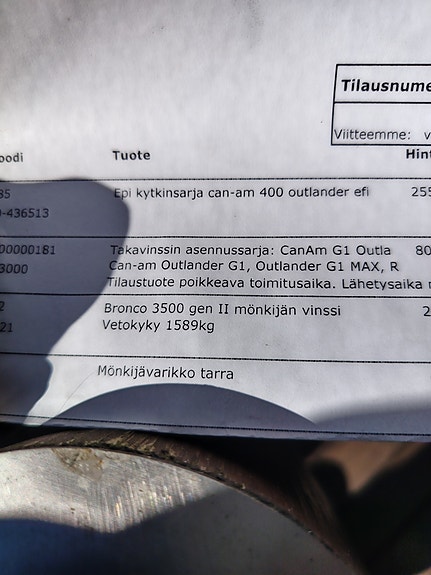 Onko sinulla tarvetta puskulevyn tai vinssin varaosalle, tai esimerkiksi lisävalolle? Torista voit löytää sinun mönkijääsi sopivan varaosan käytettynä.