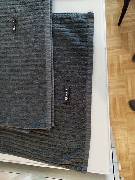 Luhta käsipyyhe x 10 ja tummanharmaa matto Ikea