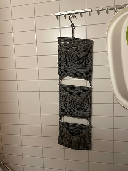 Harmaa virkattu roikkuva säilytyskori 3 taskulla