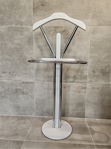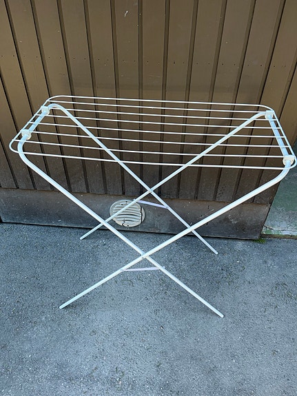 Valkoinen metallinen pyykkiteline