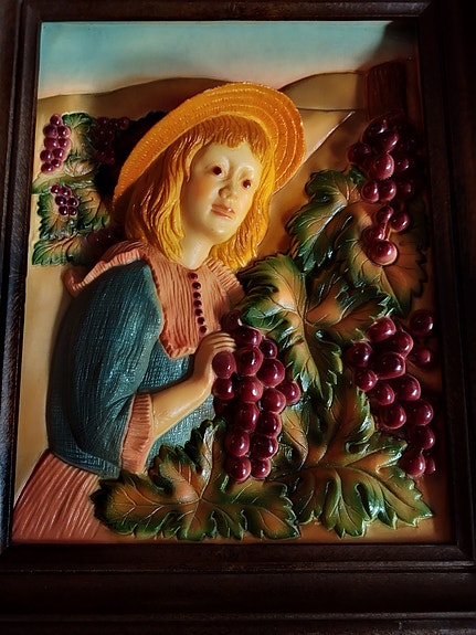 Tyttö patsas viini tarhassa taulu