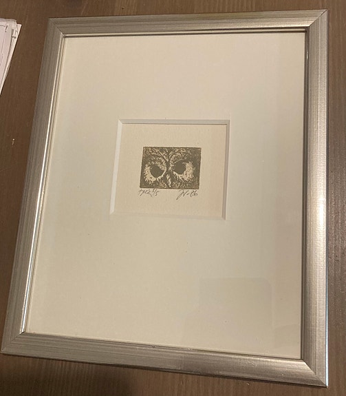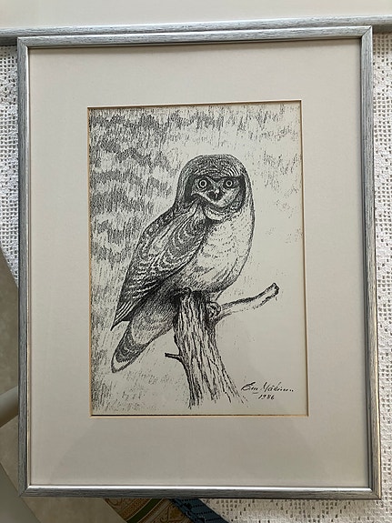 Taidegrafiikka kehystetty pöllöaiheinen vedos