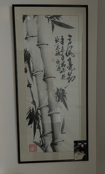 Kiinalainen bambu-aiheinen mustemaalaus kehystetty
