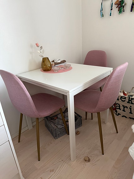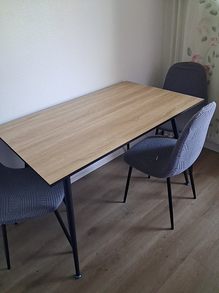 Kolme keinonahka tuoli jysk ja uusi IKEAn pöydä