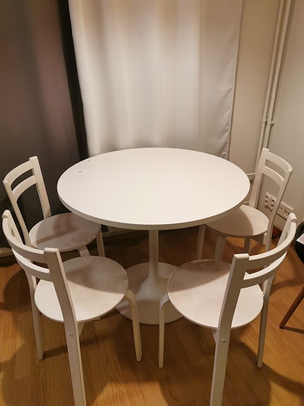 Ruokapöytä ja neljä tuolia