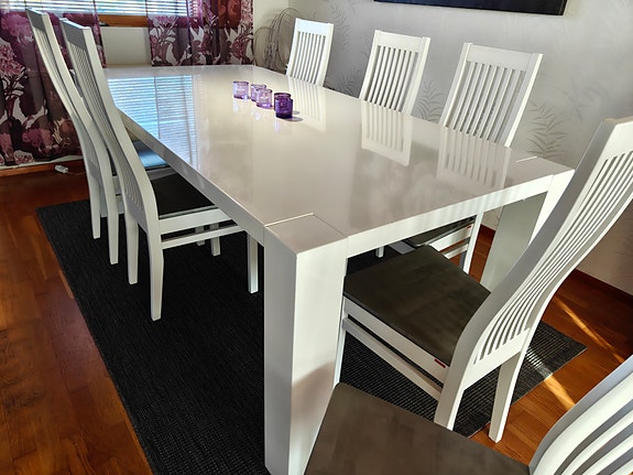 Korkeakiilto ruokapöytä ja Pohjanmaan Kaluste tuolit 7kpl