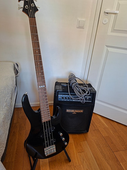 Basso + vahvistin setti (ESP LTD B-50 + Behringer)