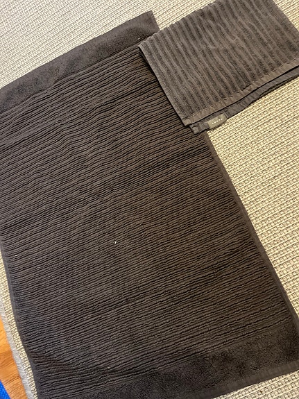Luhta käsipyyhe x 10 ja tummanharmaa matto Ikea