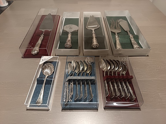 Jos hankit aterimia ja pöytähopeita käytettynä, muistathan että niitä kannattaa kiillottaa säännöllisesti. Netistä löydät runsaasti vinkkejä esimerkiksi hopean puhdistukseen. Toki vanhassa esineessä saa monen mielestä myös näkyä jonkin verran ajan patinaa. Myös oikea säilyttäminen auttaa pitämään vanhat hopeat kiiltävinä: pöytähopeat kannattaa säilyttää joko alkuperäisissä laatikoissa tai esimerkiksi puuvilla- tai minigrip-pusseissa, mieluiten valolta suojattuna.
