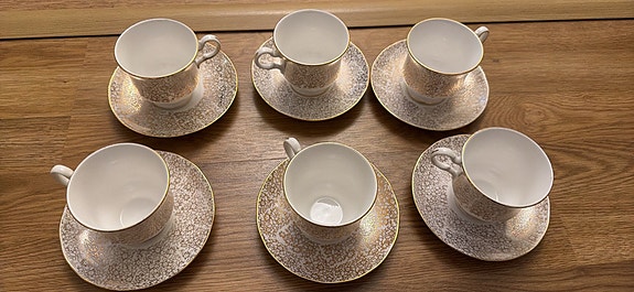 Queen Anne kahvikupit ja aluslautaset, 6 kpl